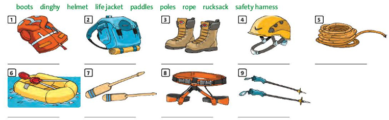 1. Label pictures 1-9 with the words below. 2. Which pieces of equipment from exercise 1 do you use for … 3. Choose the correct words to complete the sentences about the photo below. 4. Read the Speaking Strategy. Then write five sentences to describe the photo below. Use phrases from exercise 3. 5. Read the examiner’s questions in the task and make notes. 6. Now do the task using your notes from exercises 5.