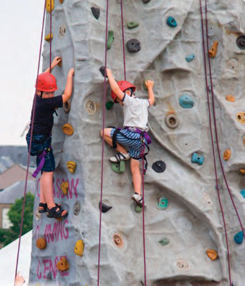 (Bức ảnh cho thấy hai đứa trẻ đang leo tường.)