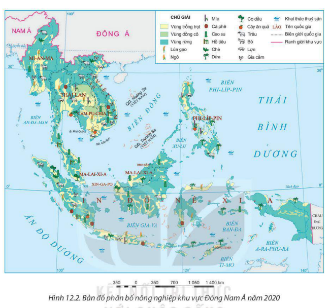 Khai thác thông tin mục 1 và hình 12.2, hãy trình bày sự phát triển và phân bố ngành nông – lâm – thuỷ sản của khu vực Đông Nam Á.