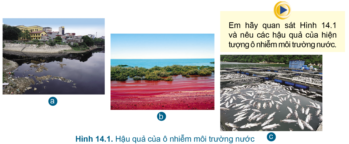 Em hãy quan sát Hình 14.1 và nêu các hậu quả của hiện tượng ô nhiễm môi trường nước