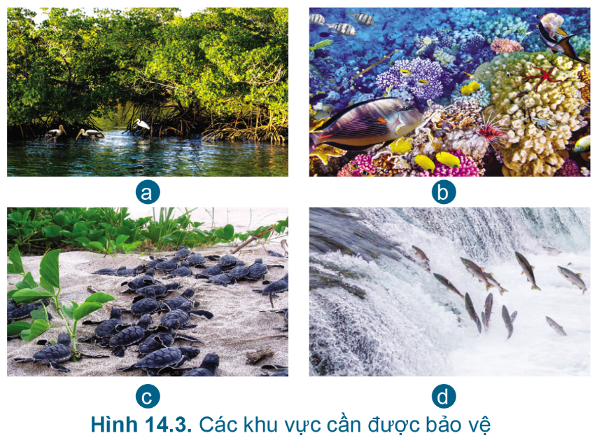 Em hãy nêu tên các khu vực cần được bảo vệ trong Hình 14.3.