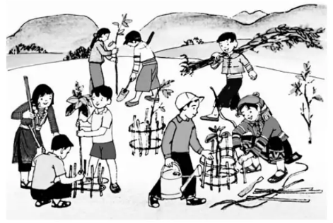 a) Các bạn trong tranh đang cùng nhau trồng cây xanh