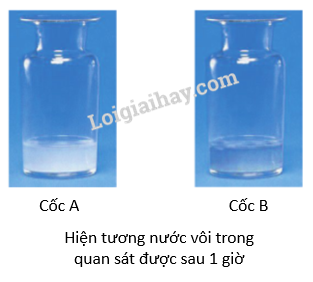 – Sau 1 giờ, mở 2 chuông ra và quan sát hiện tượng trên bề mặt 2 cốc nước vôi trong. Ghi lại kết quả thí nghiệm.