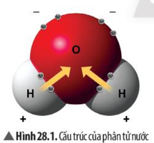 – Nước được cấu tạo từ các phân tử nước, mỗi phân tử nước được cấu tạo từ một nguyên tử oxygen và hai nguyên tử hydrogen. Do có hai đầu tích điện trái dấu nhau nên phân tử nước có tính phân cực. Vì vậy, các phân tử nước có thể liên kết với nhau và liên kết với các phân tử phân cực khác.