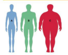 Câu 1: Hình bên mô tả ba người A, B, C đang ở các mức cân nặng khác nhau. Trong đó, người B có mức cân nặng bình thường. Quan sát hình và trả lời các câu hỏi sau: