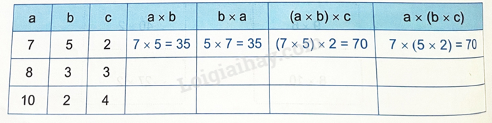 – Khi nhân một tích hai số với số thứ ba, ta có thể nhân số thứ nhất với tích của số thứ hai và thứ ba:
