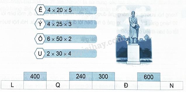 Ô: 6 x 50 x 2 = 6 x (50 x 2) = 6 x 100 = 600