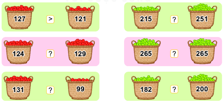 Điền dấu (>, <, =) thích hợp vào ô có dấu “?”.