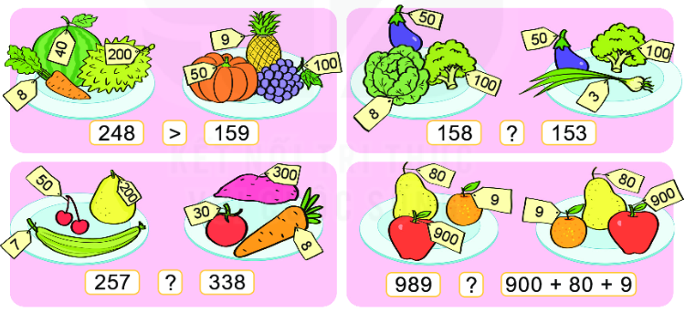 + Nếu cùng số trăm thì mới xét số chục: Số nào có số chục lớn hơn thì số đó lớn hơn.