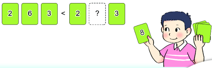 Việt cần xếp thẻ số nào vào dấu “?” để nhận được so sánh đúng? Việt có thể xếp bao nhiêu cách khác nhau?