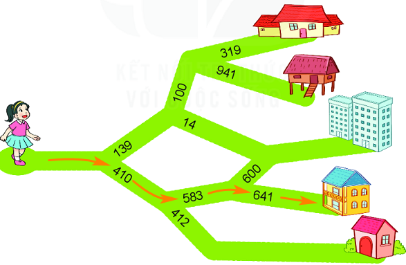 Tại ngã rẽ thứ hai, ta có 412 < 583. Do đó Mai sẽ đi theo con đường có số 583.