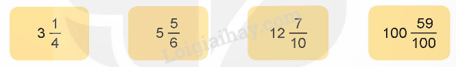 $100\frac{{59}}{{100}}$ : phần nguyên là 100, phần phân số là $\frac{{59}}{{100}}$