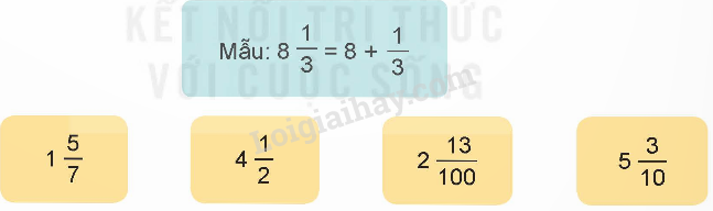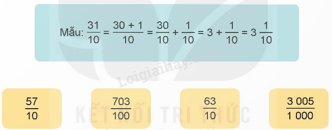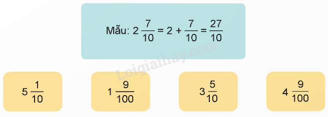 Chuyển hỗn số thành phân số thập phân (theo mẫu).