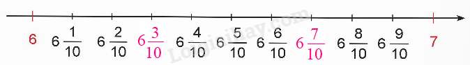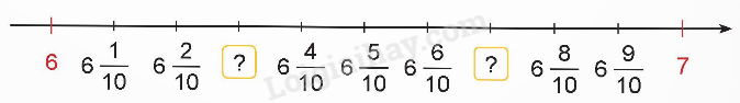 Đếm thêm $\frac{1}{{10}}$ rồi viết hỗn số thích hợp vào chỗ trống.