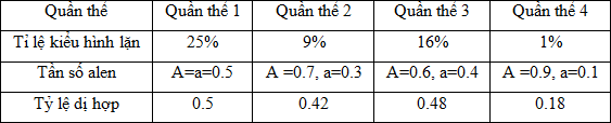 Vậy quần thể có tỷ lệ dị hợp tử thấp nhất là quần thể 4