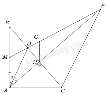 Xét \(\Delta AEM\) , có \(GH\,{\rm{//}}\,AB\) \( \Rightarrow \frac{{EH}}{{EA}} = \frac{{HG}}{{AM}}\) (định lí Ta lét)