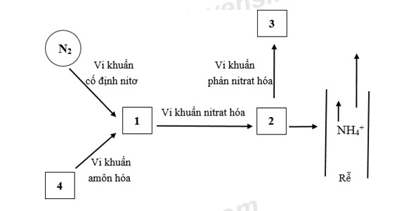 D. (1). NH4+; (2). N2; (3). NO3–; (4). Chất hữu cơ.