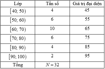 Câu 11: Điểm thi của 32 học sinh trong kì thi Tiếng Anh (thang điểm 100) như .sau: