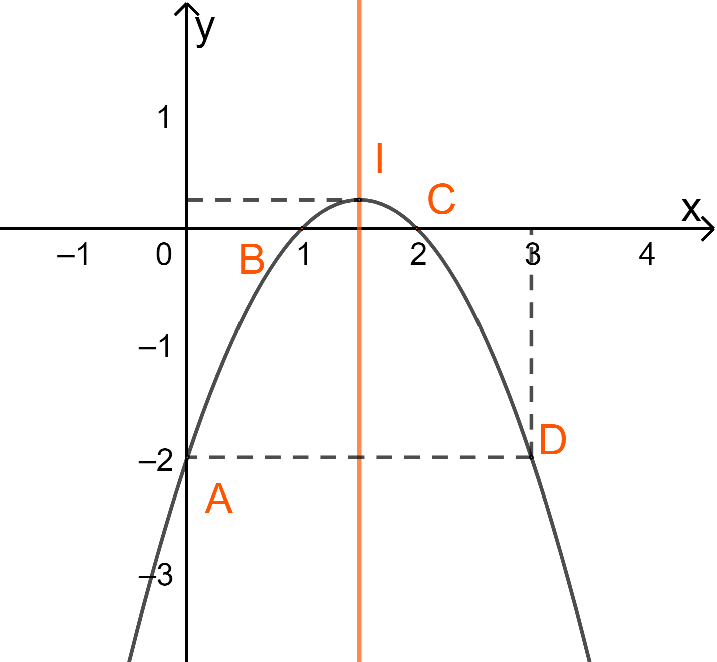 Lấy D(3;-2) thuộc (P), đối xứng với A(0;-2) qua trục đối xứng