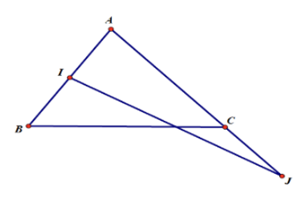 Gọi I là trung điểm của AB, J là điểm nằm trên đường thẳng AC thỏa mãn điều kiện \(\overrightarrow {JA} = 3\overrightarrow {JC} \)\( \Leftrightarrow \overrightarrow {JA} – 3\overrightarrow {JC} = \vec 0\)