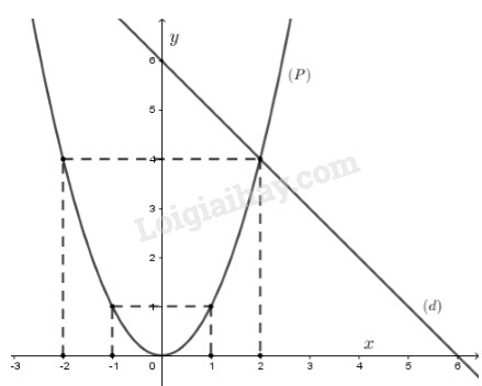 Cho hàm số \(\left( P \right):y = {x^2}\) và hàm số \(\left( D \right):y = – x + 6\)