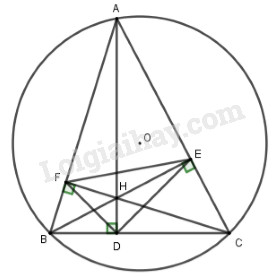 Cho tam giác \(ABC\) có ba góc nhọn nội tiếp đường tròn \(\left( O \right)\). Các đường cao \(AD\), \(BE,CF\) của \(\Delta ABC\) cắt nhau tại \(H\).
