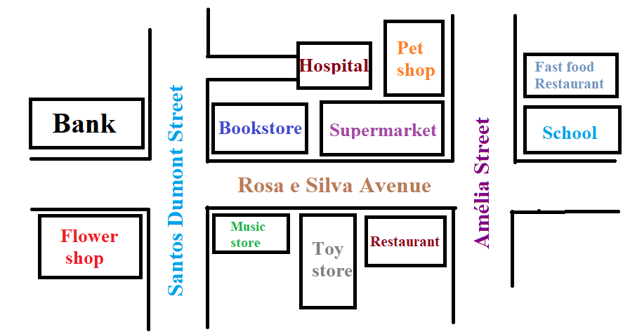 5. The bank is opposite the flower shop.