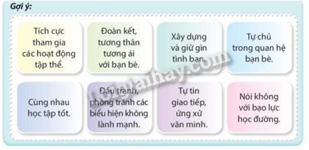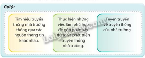 Phương pháp giải: Dựa vào gợi ý, thực tế và thảo luận đưa ra các xây dựng truyền thống nhà trường.