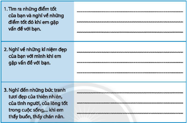 3. Nghĩ đến những bức tranh tươi đẹp của thiên nhiên, của tình người, của lòng tốt trong cuộc sống,… khi em thấy buồn, thấy chán nản.