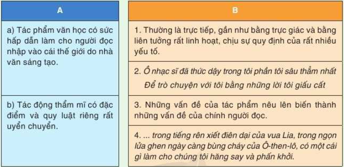 Ghép các lí lẽ, dẫn chứng ở cột B cho phù hợp với luận điểm ở cột A: