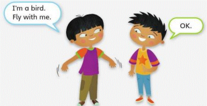 Ví dụ, bạn trai sẽ dùng đưa 2 cánh tay lên xuống và dùng lời nói để diễn tả một chú chim “I’m a bird. Fly