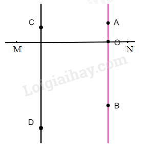 Vẽ đường thẳng AB đi qua điểm O và vuông góc với đường thẳng MN ta được đường thẳng AB song song với đường thẳng CD