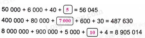 a) Xác định giá trị của mỗi chữ số theo các hàng rồi viết số đã cho thành tổng.