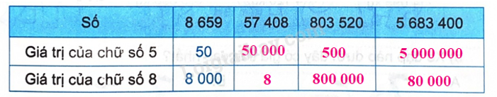 Xác định hàng của chữ số 5 và chữ số 8 trong mỗi số rồi viết giá trị của chữ số đó