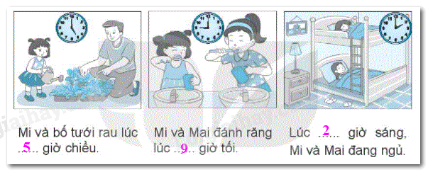 Quan sát đồng hồ rồi viết số vào chỗ chấm cho thích hợp.