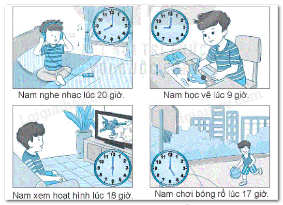 Quan sát tranh vẽ để tìm thời gian thích hợp với mỗi bức tranh.