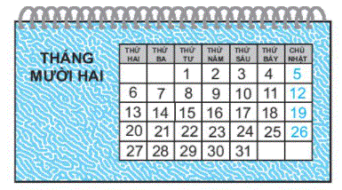 c) Nam và Việt cùng đội bóng của lớp có hai trận bóng vào Chủ nhật tuần thứ nhất và tuần thứ ba của tháng 12. Vậy đội bóng của lớp Nam và Việt có trận đấu vào ngày ….. và ngày …….