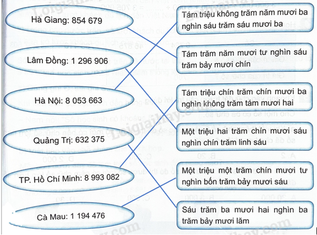 Nối số dân của mỗi tỉnh, thành phố với cách đọc số đó (theo Tổng cục Thống kê năm 2019).