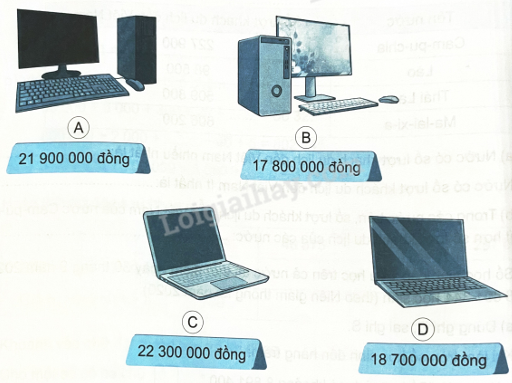 Giá tiền của máy tính D là 22 300 000 đồng.
