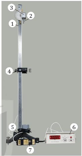 Cho bộ dụng cụ thí nghiệm đo gia tốc rơi tự do, số 1 chỉ bộ phận nào của thí nghiệm?