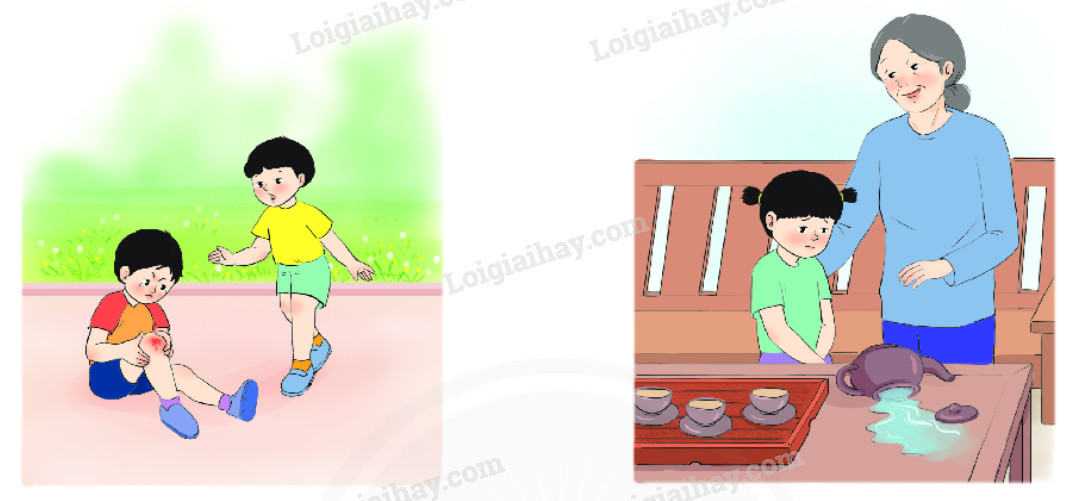 Em: Xin lỗi bạn nhé! Mình sơ ý quá! Bạn có đau lắm không?