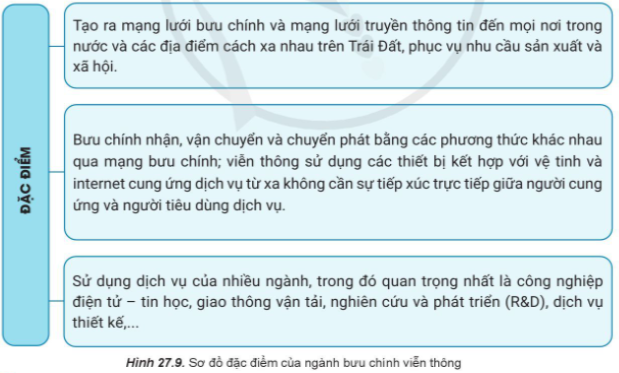 Quan sát hình 27.9, hãy nêu đặc điểm của ngành bưu chính viễn thông.