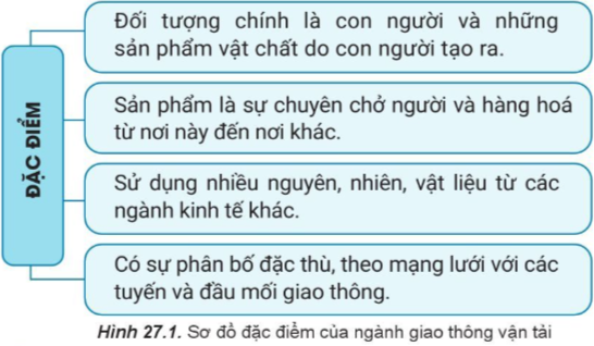 Đọc thông tin và quan sát hình 27.1, hãy nêu đặc điểm của ngành giao thông vận tải.