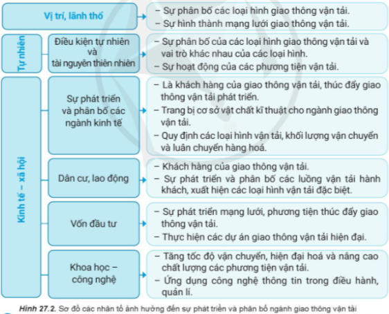 – Đọc thông tin trong mục “Các nhân tố ảnh hưởng đến sự phát triển và phân bố giao thông vận tải”.