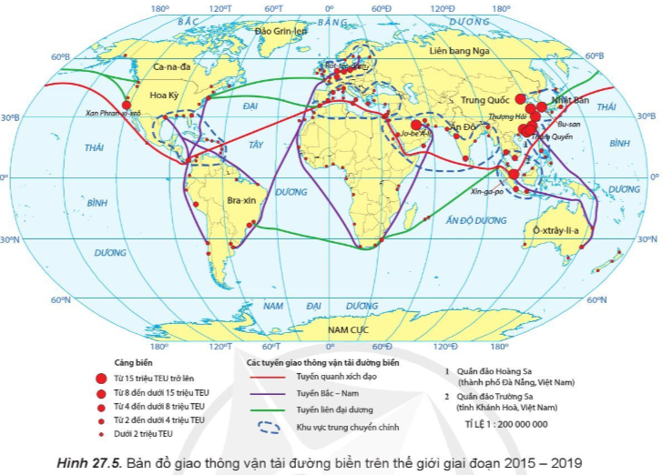 – Trình bày tình hình phát triển và phân bố của ngành giao thông vận tải đường biển.