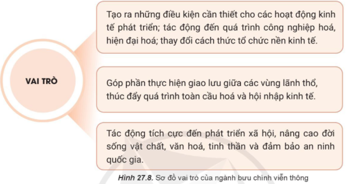 Đọc thông tin và quan sát hình 27.8, hãy nêu vai trò của ngành bưu chính viễn thông. Lấy ví dụ cụ thể.