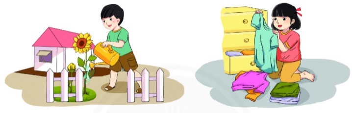 – Tiếp đến, hai bố con em cùng bắt sâu và nhổ cỏ trong vườn.