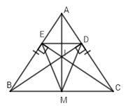 Cho \(\Delta ABC\) cân tại $A,$  hai đường cao $BD$  và $CE$  cắt nhau tại $I.$  Tia $AI$ cắt $BC$  tại $M.$  Khi đó \(\Delta MED\)là tam giác gì?