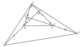 Từ (*) và (**) \( \Rightarrow \Delta AIK\)vuông cân tại $A.$