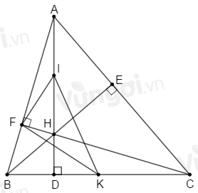 \(H\) là giao của hai đường cao \(BE;\,CF\) nên \(H\) là trực tâm của \(\Delta ABC.\)